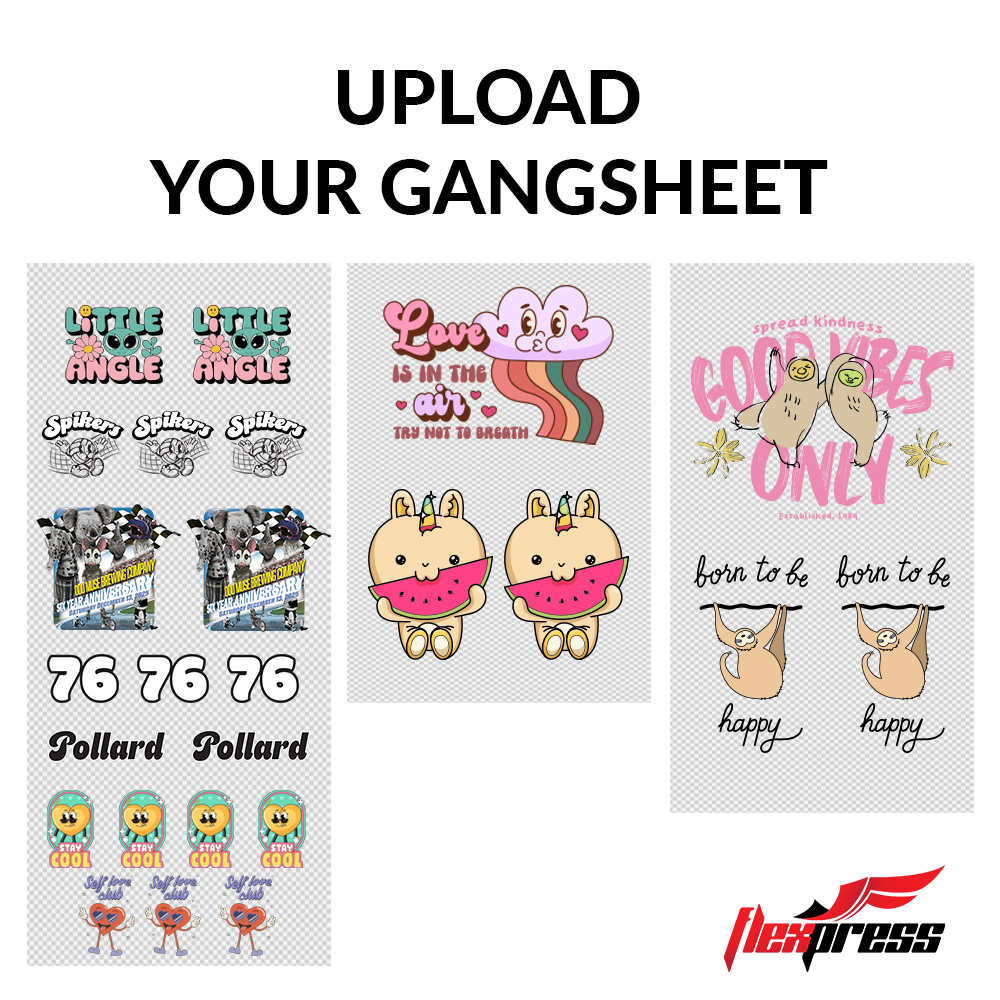 A gang sheet is a cost-effective printing method where multiple designs are printed on the same sheet. This helps reduce the cost per print, especially for bulk orders.